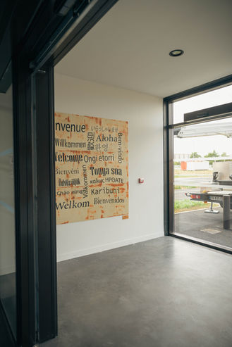 Description du projet : Aménagement d'un espace d'accueil pour une importante manufacture d'artisanat industrielle en Charente Maritime. Création de trois banquettes et de quatre tables basses
